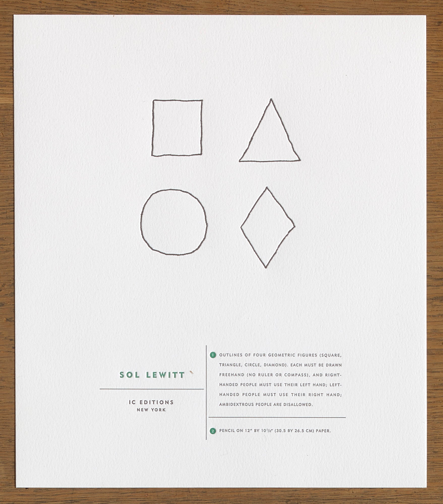 “DO-IT-YOURSELF” contains complete instructions for artworks by Jessica Diamond, Sol LeWitt and Lawrence Weiner; outstanding representatives from 3 generations of concept art. The artworks are left to be carried out by the collector with paper, pencil and stencil.